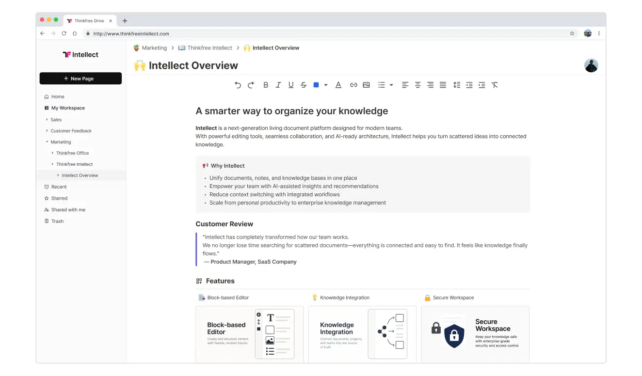 Dokumente einfach erstellen, speichern und teilen durch die direkte Verbindung mit dem privaten Thinkfree Drive Cloud-Speicher. Optimieren Sie Workflows und schützen Sie Ihre Daten.